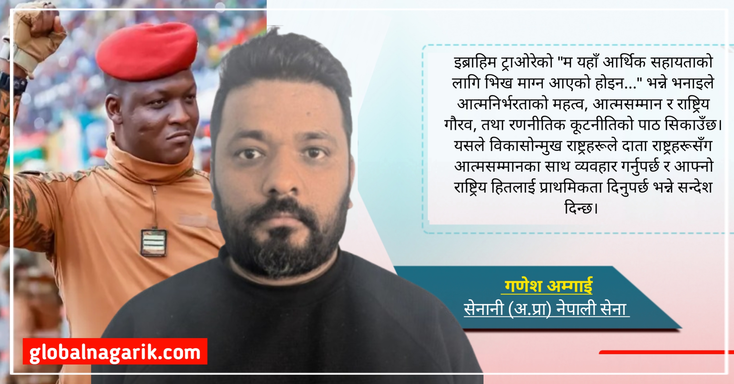 हालका दिनहरूमा सामाजिक सञ्जालमा चर्चाको शिखरमा रहेका बुर्किना फासोका संक्रमणकालीन राष्ट्रपति क्याप्टेन इब्राहिम ट्राओरे एक यस्ता सैनिक नेता हुन् जसले अफ्रिकी महाद्वीपमा नयाँ बहस र आशाको किरण जगाएका छन्। उनको उदय र उनका नीतिहरूले विश्वभर, विशेषगरी विकासोन्मुख राष्ट्रहरूमा गम्भीर चासो उत्पन्न गरेको छ। उनको पृष्ठभूमि,
