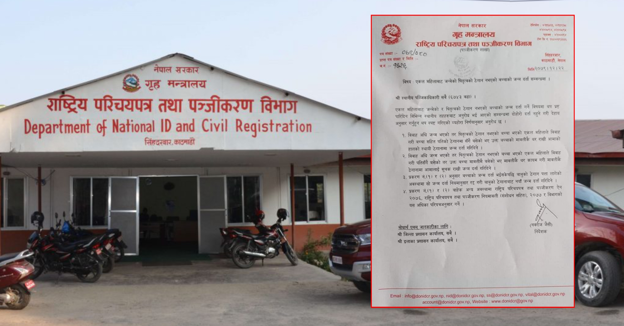 काठमाडौँ । एकल आमाका सन्तानको मावलीकै थर राखेर जन्म दर्ता हुने भएको छ । राष्ट्रिय परिचयपत्र तथा पञ्जीकरण विभागले स्थानीय तहका सबै ६ हजार ७४३ वटै वडा कार्यालयलाई परिपत्र गर्दै एकल महिलाबाट जन्मेका तथा पितृत्वको ठेगान नभएका बच्चाको मावलीकै थर राखेर जन्म दर्ता गर्न निर्देशन