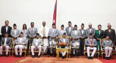 काठमाडौं । नवनियुक्त मन्त्रीले पद तथा गोपनीयताको शपथ लिएका छन् । राष्ट्रपति कार्यालयमा आज शुक्रवार आयोजित समारोहमा राष्ट्रपति रामचन्द्र पौडेलसमक्ष नवनियुक्त मन्त्रीले शपथ ग्रहण गरेका हुन् । प्रधानमन्त्री पुष्पकमल दाहाल प्रचण्डले तीन महिनामै सातौँ पटक मन्त्रिपरिषद् पुनर्गठन गरेका हुन्। प्रधानमन्त्री प्रचण्डले आज कांग्रेस, नेकपा एकीकृत समाजवादी
