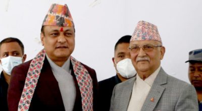 काठमाडौं । नेकपा एमाले र जनता समाजवादी पार्टीबिच आंशिक क्षेत्रमा चुनावी तालमेल भएको छ । तालमेल नभएका ठाउँमा दुवै दलले मित्रवत् प्रतिस्पर्धा गर्ने भएका छन् । जसपाले प्रतिनिधि सभामा १७ सिटमा सहमति जनाएको छ । एमाले अध्यक्ष केपी शर्मा ओली र जसपा अध्यक्ष उपेन्द्र यादवबीच