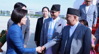 काठमाडाैं । प्रधानमन्त्री केपी शर्मा ओली र चीनका राष्ट्रपति सी चिनफिङबीच दुई पक्षीय भेटवार्ता भएको छ। शाङ्घाइ सहयोग सङ्गठन (एससिओ) को शिखर सम्मेलनमा सहभागी हुने सिलसिलामा आज अपराह्न यहाँ आइपुगेका प्रधानमन्त्री ओलीले राष्ट्रपति सीसँग थियानजिन अतिथिगृहमा भेटवार्ता भएको हो। त्यसअघि उनले प्रधानमन्त्री ओलीलाई सो गृहमा