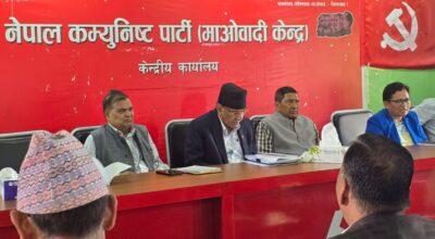 काठमाडौं । नेकपा (माओवादी केन्द्र)ले हालै सम्पन्न स्थायी समिति बैठकबाट समसामयिक राजनीतिक, सामाजिक र आर्थिक मुद्दा समेटिएको २६ बुँदे प्रस्ताव पारित गरेको छ। पार्टी केन्द्रीय कार्यालयका अनुसार, बैठकमा तराई–मधेश क्षेत्रमा देखिएको पानी संकटदेखि लिएर विद्यालय शिक्षा विधेयक, भ्रष्टाचार, किसानका समस्या, सीमा सुरक्षा, महिलामाथिको हिंसा, दलित