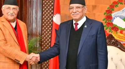 काठमाडौं । नयाँ गठबन्धनको प्रमुख दल नेकपा एमालेले नेकपा माओवादी केन्द्रका अध्यक्ष पुष्पकमल दाहाल प्रचण्डलाई पाँचै वर्ष प्रधानमन्त्री भएर जान प्रस्ताव गरेको छ। नेपाली कांग्रेससहितको सात दलीय गठबन्धन तोडेर प्रचण्डलाई फेरि आफ्नो पोल्टामा ल्याउन सफल भएको एमालेले प्रचण्डलाई पूरै अवधि सरकारको नेतृत्व हाँक्न भनेको हो।