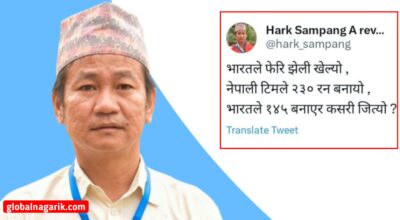 काठमाडौं । धरान उपमहानगरपालिकाका मेयर हर्क साम्पाङको नामको ट्विटर ह्यान्डलमा क्रिकेटसम्बन्धी गरिएको एउटा पोस्ट निकै ‘ट्रोल’ बनिरहेको छ। खासगरी मानिसहरूले मेयर साम्पाङले क्रिकेट खेल नबुझेको भनी खिसिटिउरी गरिरहेका छन्। गत सोमबार श्रीलंकामा भएको खेलमा नेपाल भारतसँग १० विकेटले हार्यो। नेपालले ४८.२ ओभर खेलेर भारतलाई २३१