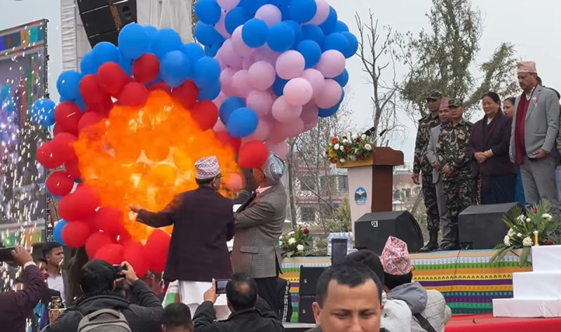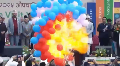 काठमाडौं । पोखरामा आयोजित भ्रमण वर्ष उद्घाटन कार्यक्रममा बेलुन पड्किएको घटनामा संलग्न भारतीय नागरिक कमलेश कुमारलाई अभद्र व्यवहारको मुद्दामा प्रहरीले हिरासतमा राखेको छ। कमलेश कुमारलाई कास्की जिल्ला प्रहरी कार्यालयले फागुन ६ गते पक्राउ गरेको हो। फागुन ३ गते पोखरास्थित सभागृहमा भ्रमण वर्षको उद्घाटनको अवसरमा हाइड्रोजन