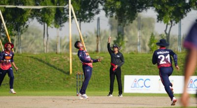 काठमाडौँ । संयुक्त अरब इमिरेट्स यूएई मा जारी एसिसी पुरुष यू–१९ प्रिमियर कप क्रिकेटमा च्याम्पियन बन्ने लक्ष्यका साथ आयोजक यूएईसँग नेपाल भिड्दैछ । उपाधि भिडन्त आज बिहान १०ः३० बजे अजमानस्थित करवान मैदानमा हुनेछ । नेपालले मलेसियालाई ९ विकेटले हराएर उपाधिनजिक पुगेको हो । युएईले भने